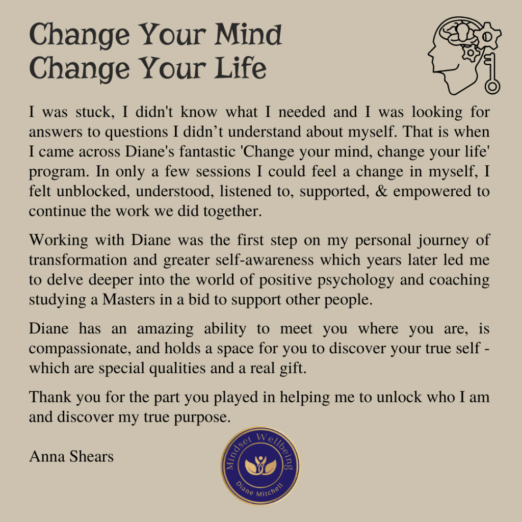 I offer an initial thirty-minute complimentary clarity call that you can book here Together, we will clarify and test your responsiveness to ‘Change Your Mind – Change Your Life‘ to ensure this is the next step in your journey to freeing the mind and living a better life